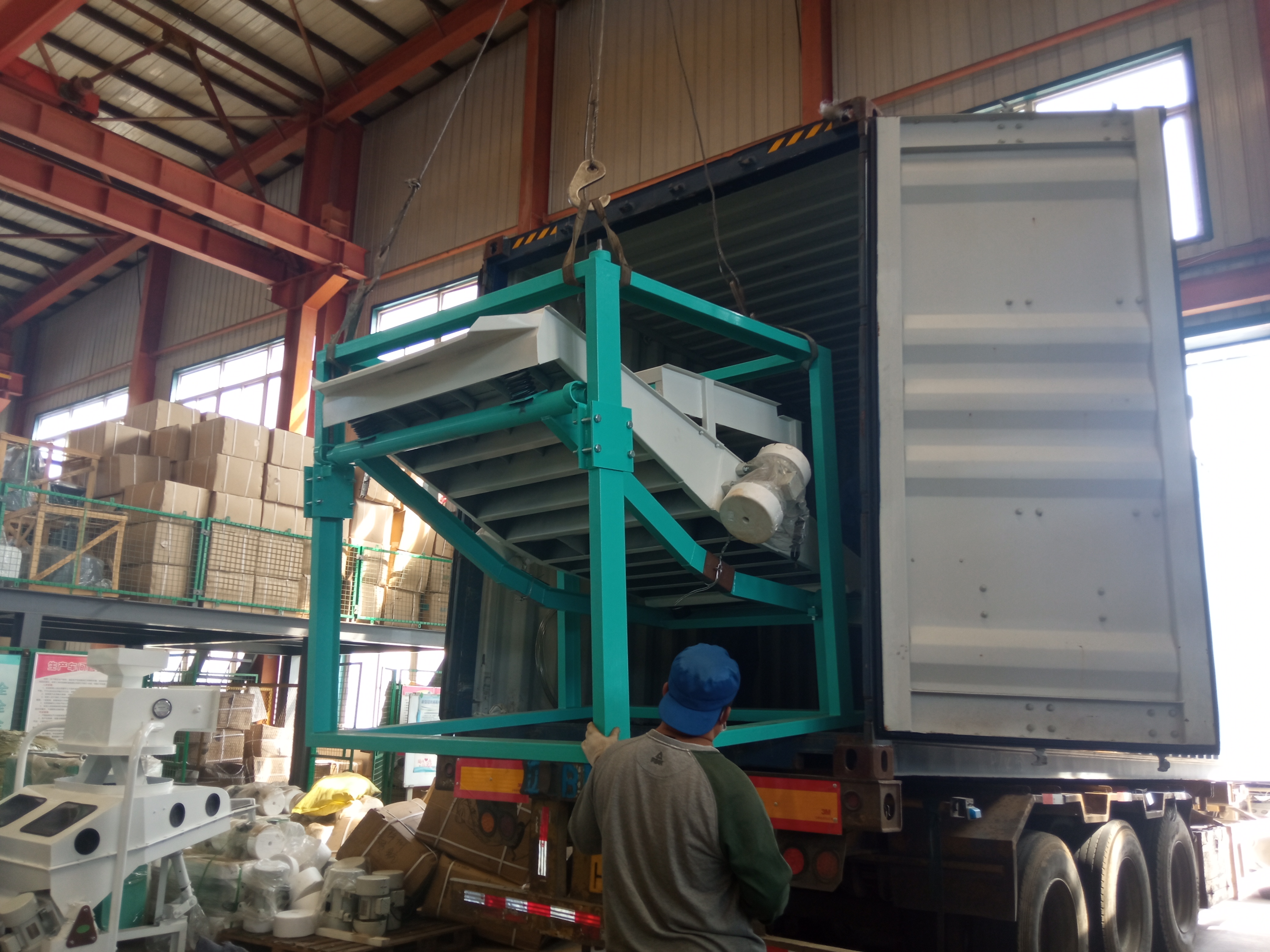 Liaoning Qiaopai Machineries Co., Ltd.экспортирует оборудование для шелушения и сепарации семян подсолнечника TFKH-1500 и Z \ C-образный ковшовый элеватор в Россию.